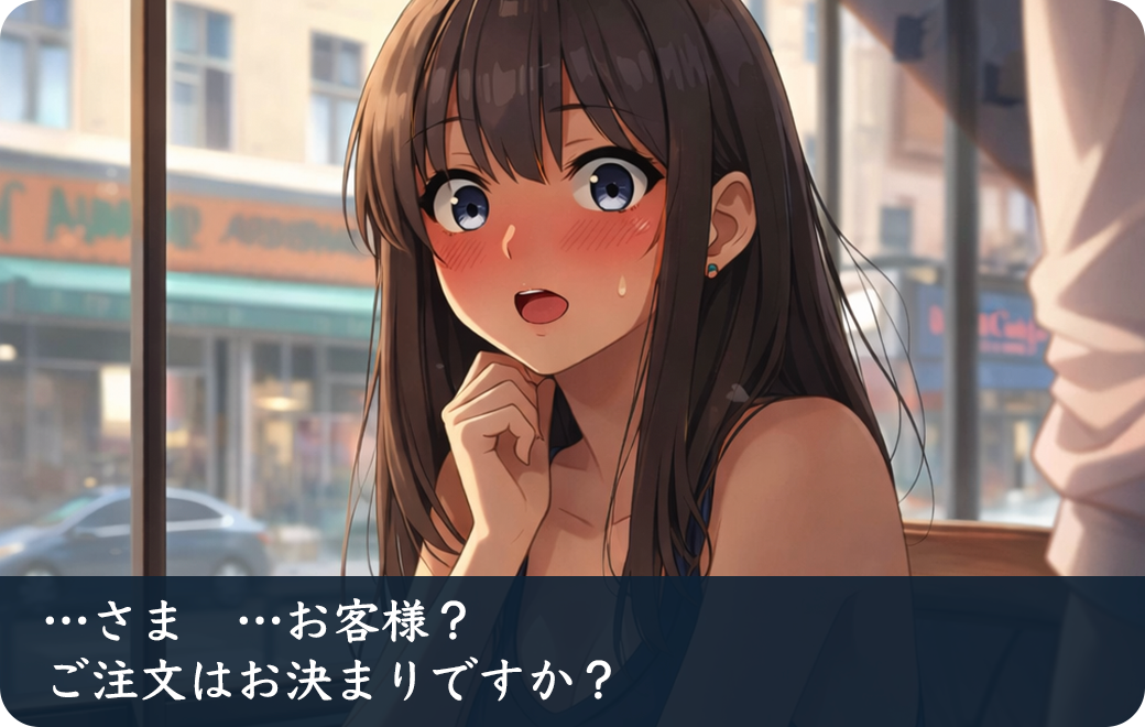 ぴゃ、ぴゃいっ!! あ、すすすすみません! えっと、コーヒーホットブレンドブラックでくだしゃい!