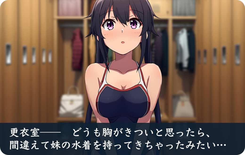 鈴ちゃん、どうしよう。妹の水着だったみたい…体のラインはっきり見えすぎ…かな?
