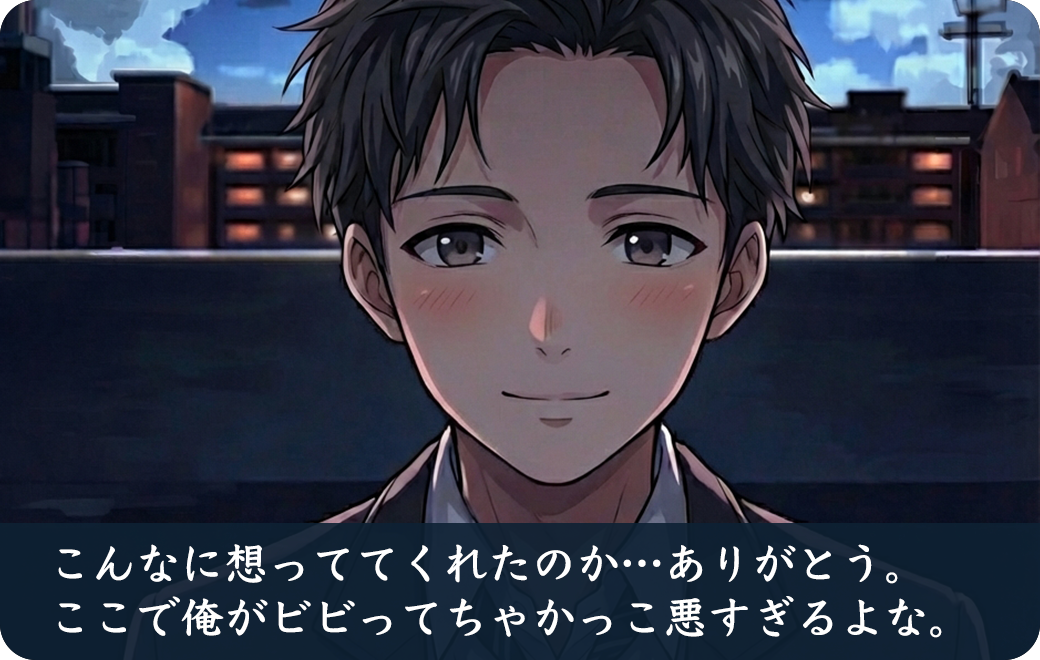 ストップ。正直、臆病だったのは俺なんだ。でも、ありがと。勇気もらえた。だから言わせてくれ。