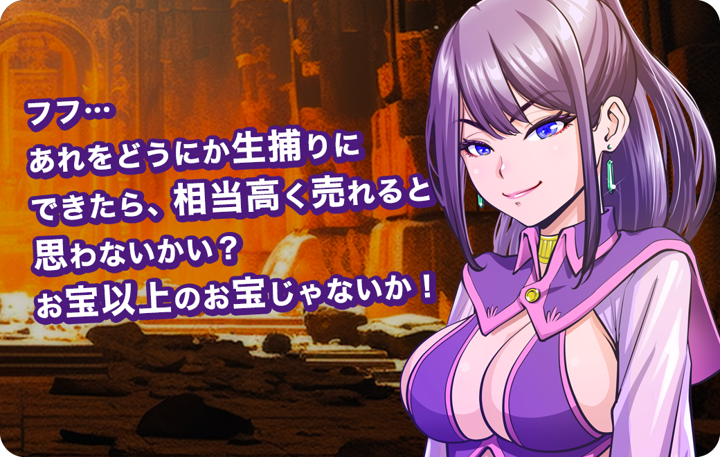 フフ… あれをどうにか生捕りにできたら、相当高く売れると思わないかい? お宝以上のお宝じゃないか!