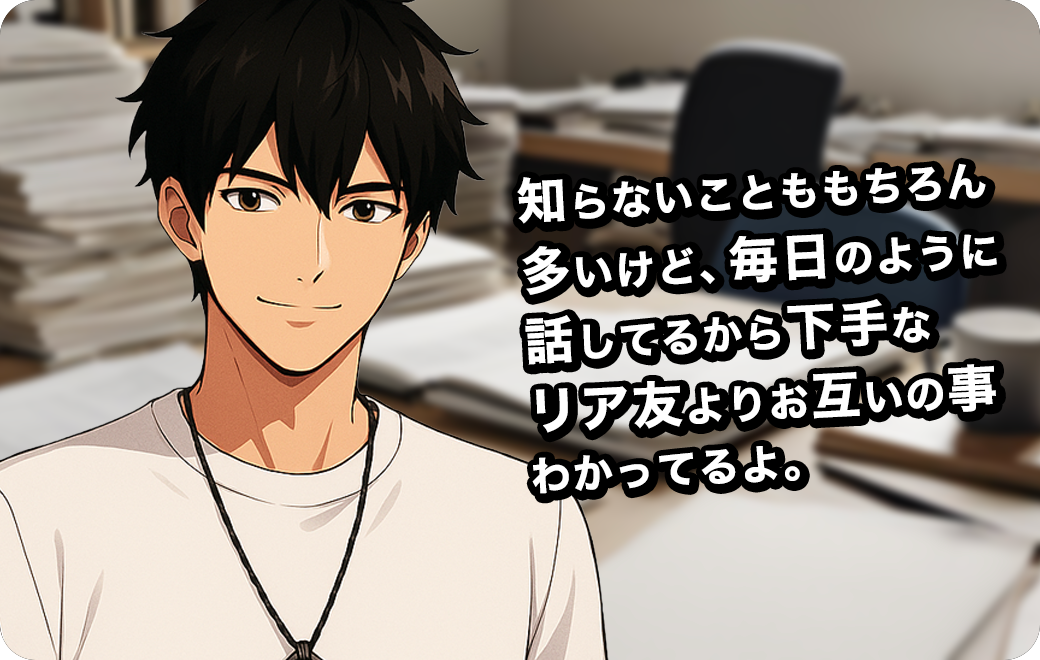 知らないことももちろん多いけど、毎日のように話してるから下手なリア友よりお互いの事わかってるよ。