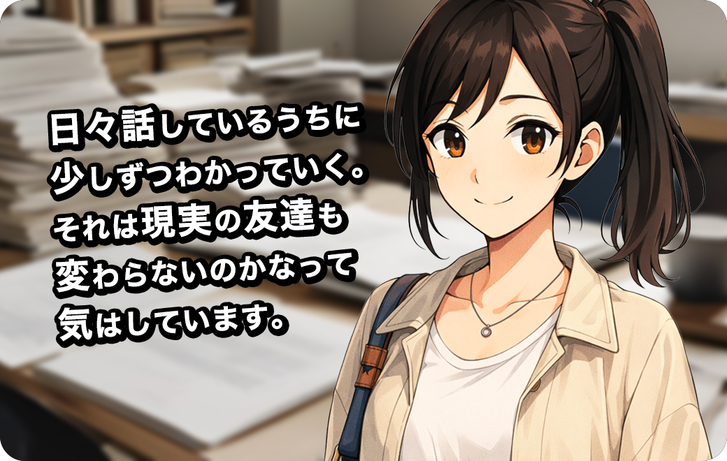 日々話しているうちに少しずつわかっていく。それは現実の友達も変わらないのかなって気はしています。