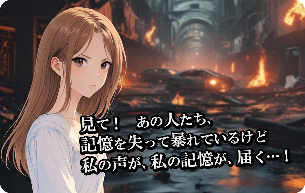 見て! あの人たち、記憶を失って暴れているけど、私の声が、私の記憶が、届く…!