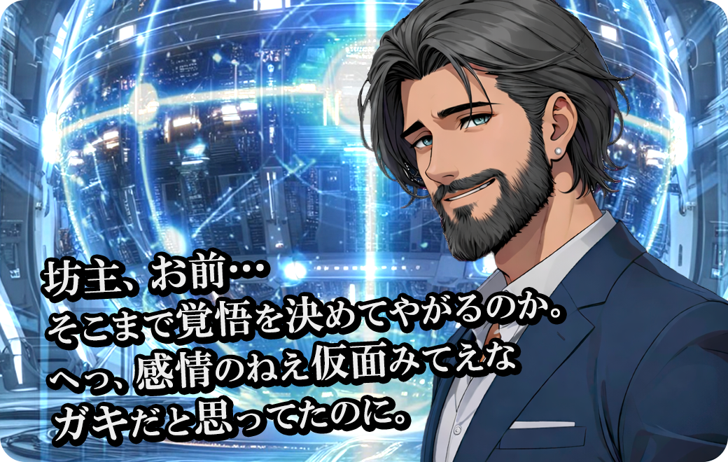 坊主、お前… そこまで覚悟を決めてやがるのか。へっ、感情のねえ仮面みてえなガキだと思ってたのに。
