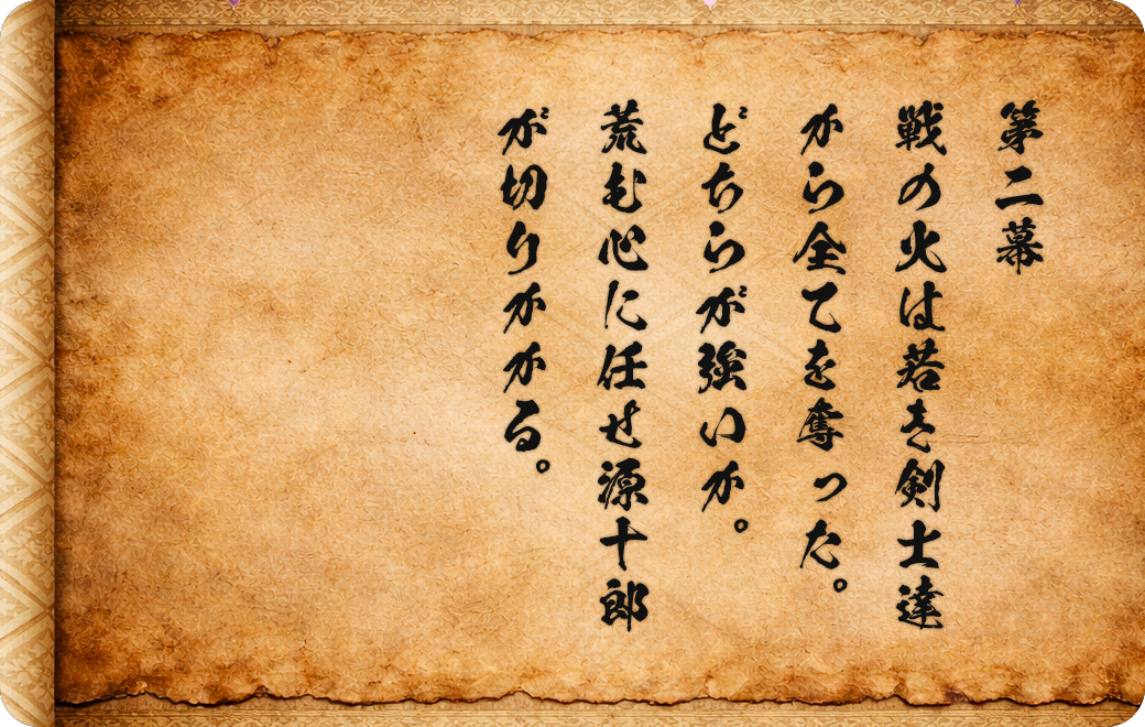 第二幕 戦の火は若き剣士達から全てを奪った。どちらが強いか。荒む心に任せ源十郎が切りかかる。