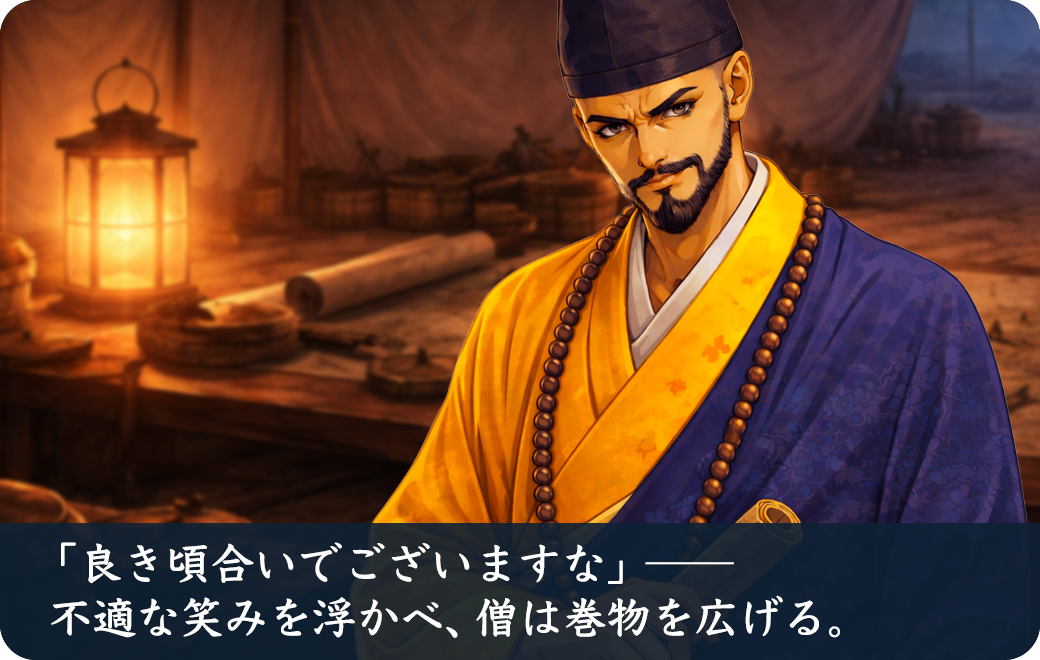 神継の悉くを討つのがこの戦の主旨でございます。決行は明朝。三点より渡河を開始し甲と乙の二隊が…