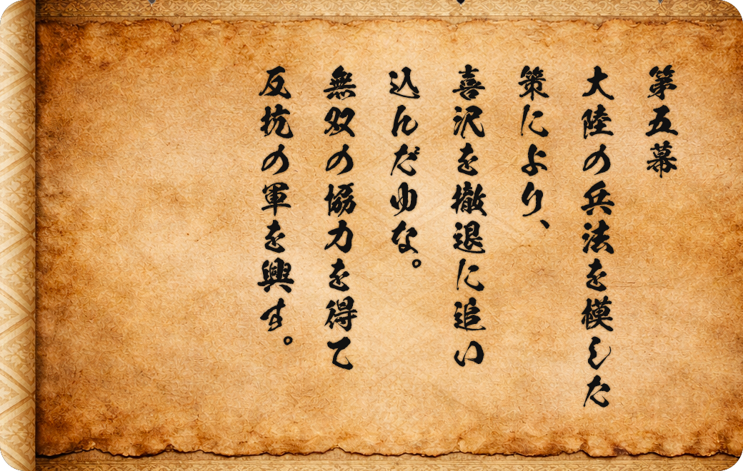 第五幕 大陸の兵法を模した策により、喜沢を撤退に追い込んだゆな。無双の協力を得て反抗の軍を興す。