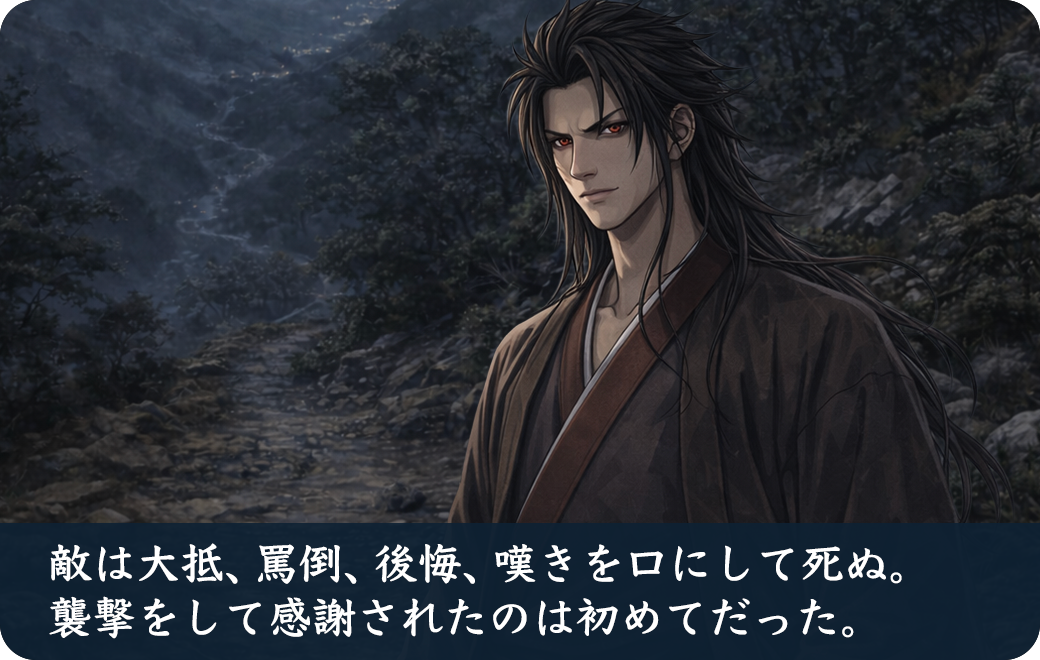 ありがとう? あんた、こんな世の中でまだ生きたいのか… なら立ちな。立って剣を握るんだ。それしかねえ。