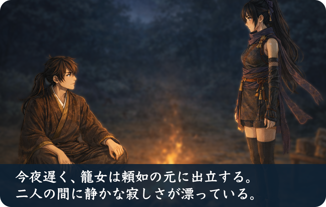 お戯れを… 私はただの影にござりまする。…千代丸様、明日は香澄神宮、どうかご無事で。
