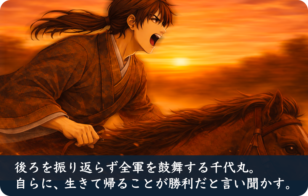 駆け抜けよ! 私が討たれたら誰かが勾玉を運べ! 一人でも生きて帰れば喜沢の勝利だ! 生きよ!