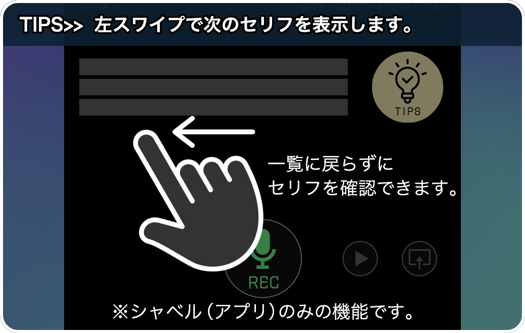 【便利機能】左スワイプで次のセリフを、右スワイプで前のセリフを表示します。