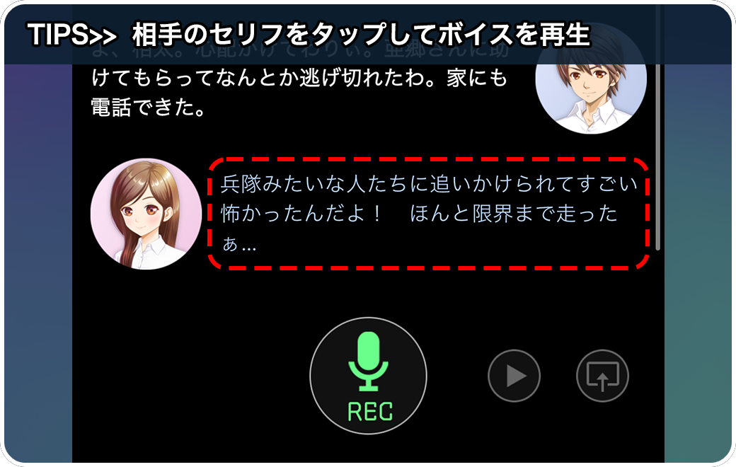 【プロ声優のボイスを聞いてみましょう】ほとんどのかけ合いセリフにボイスが収録されています。