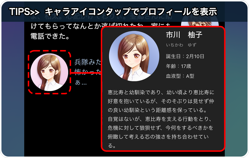 【キャラのプロフィール】キャラのプロフィールや、名前の読み方などを確認しましょう。