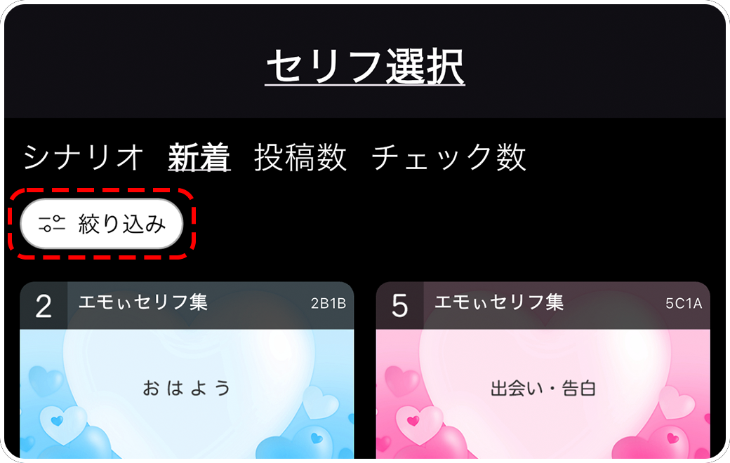 これらの表示方法ではセリフを絞り込むこともできます。絞り込みは後ほどご説明します。