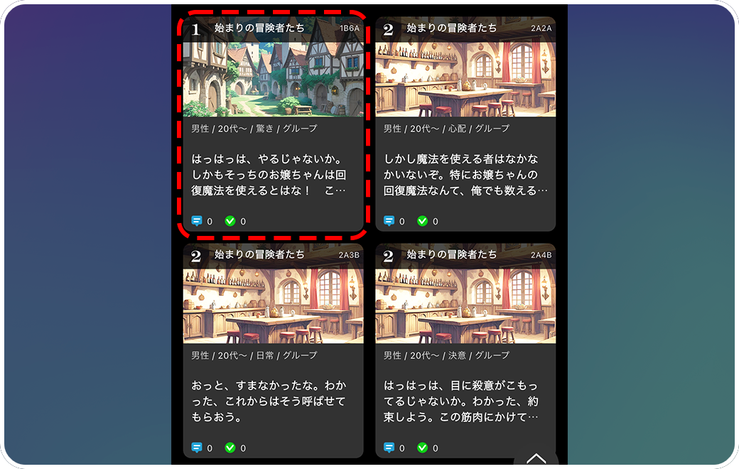 始まりの冒険者というシナリオの20代男性のセリフのみが表示されるようになりました。