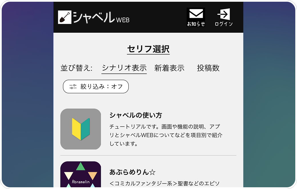 サイトの作りはシャベルとほとんど同じですが、シャベルWEBは白を基調としたデザインになっています。