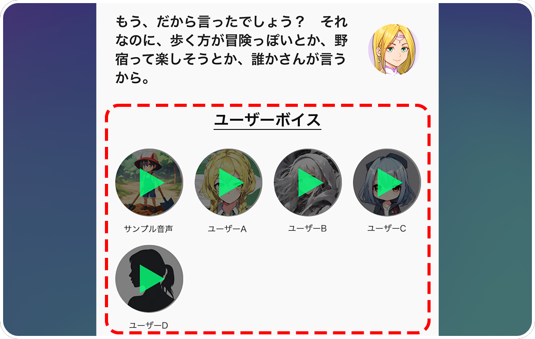 【ユーザーボイス】ユーザーがアップロードしたボイスです。タップすると再生されます。