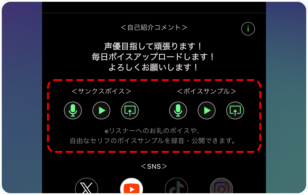 【サンクスボイス・ボイスサンプル】感謝のメッセージや自由なセリフでボイスサンプルを録音しておけます。