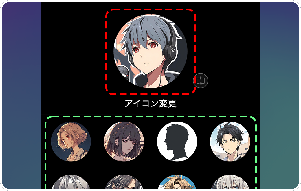 【アイコンの変更】ユーザーアイコンをタップするとアイコンの変更ができます。